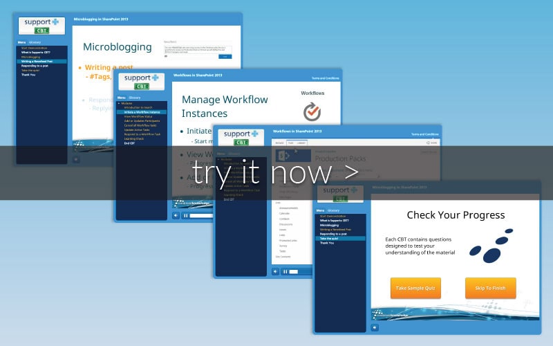 Try a sample of CBT for SharePoint 2013 and SharePoint Online
